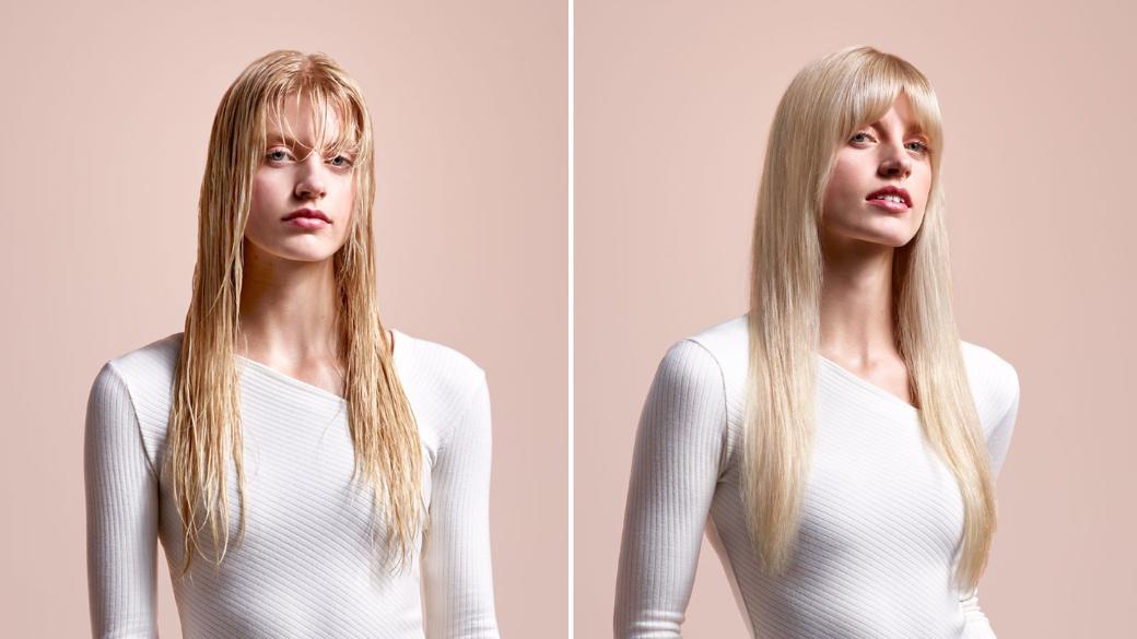 تمليس شعر رطب إلى جاف، باستخدام الهواء. بدون ألواح ساخنة. بدون التلف الناجم عن الحرارة.1