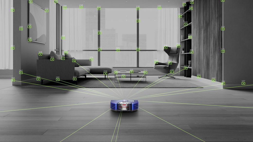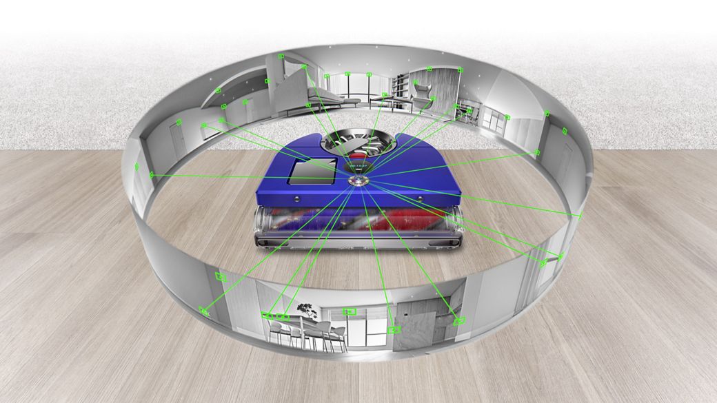 زُوِّدت المكنسة الروبوت Dyson 360 Vis Nav™‎ بنظام رؤية شامل 360 درجة ذكي، يتيح لها تحليل البيئة المحيطة، ورؤية الأماكن التي تحتاج إلى تنظيفها بدقة، وتذكّر الأماكن التي مرت عليها. ويشتمل هذا الجهاز على 26 مستشعراً مختلفاً ويقوم بتحليل ما يصل إلى 10,000 نقطة بيانات في الثانية، ليقوم بإعداد خريطة لكل غرفة وكل أرضية حتى يمكنه التنقّل بطريقةٍ ذكيةٍ في أرجاء منزلك بالكامل. ويتذكر تطبيق MyDyson™‎ كل هذه المعلومات، حتى يمكنك تعيين المناطق وتخصيص سلوك مكنستك الروبوت.